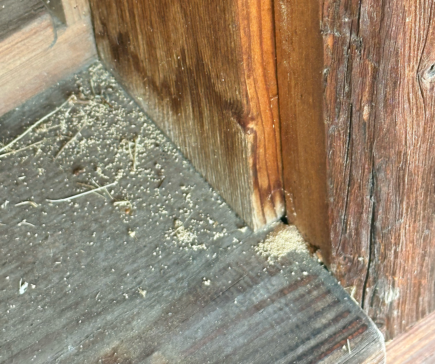 - Signes visibles : trous ronds (1 à 3 mm), amas de vermoulure (poussière de bois).
